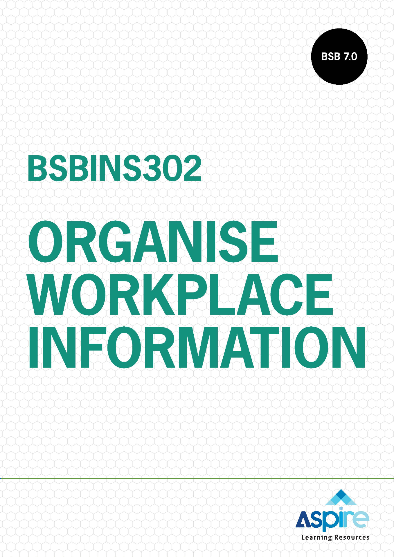 CANNOT BE PRINTED - BSBINS302 Organise workplace information eBook. This book is also available in print format - For more information please visit www.aspirelr.com.au