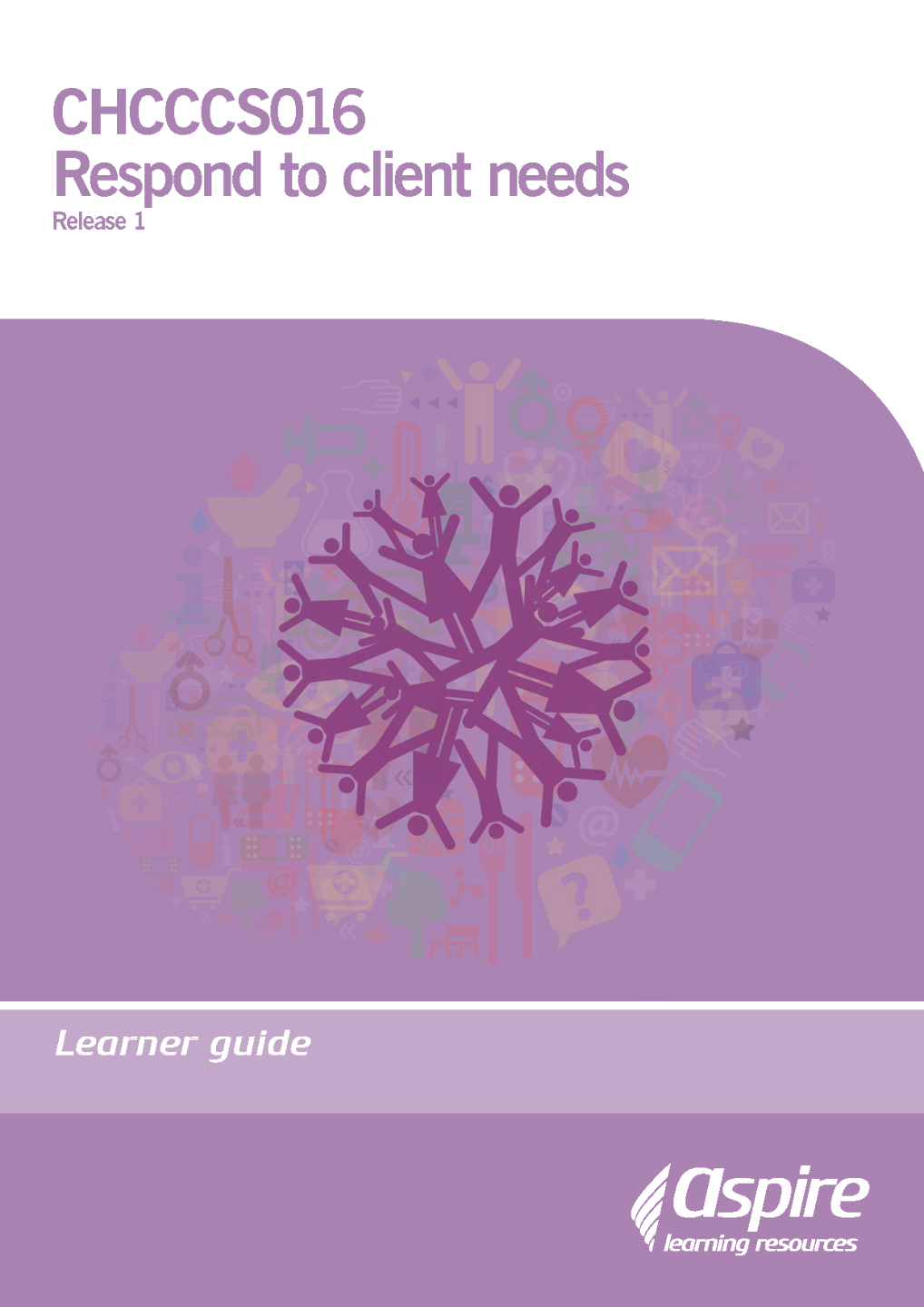 CANNOT BE PRINTED - CHCCCS016 Respond to client needs eBook. This book is also available in print & online format - For more information please visit www.aspirelr.com.au